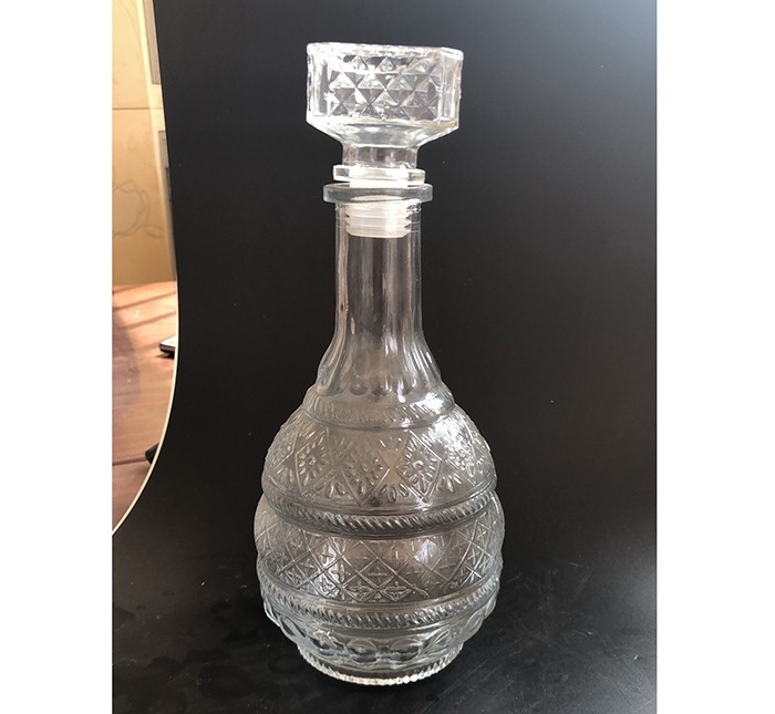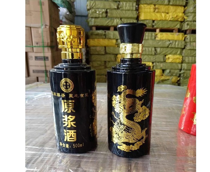蒙砂酒瓶是在制品玻璃上,粘附一定大小面積的玻璃色釉粉,玻璃瓶廠經過580~600℃的高溫烘烤,使玻璃色釉涂層凝結在玻璃外表,并顯現出具有與玻璃主體不同顏色的一種裝飾辦法。粘附玻璃色釉粉,可用排筆涂刷,亦可用膠輥滾涂。經過絲印加工,能夠得到蒙砂面的樓空圖案。 其辦法是:在玻璃制品外表上,絲印一層由阻熔劑構成的圖案紋樣。